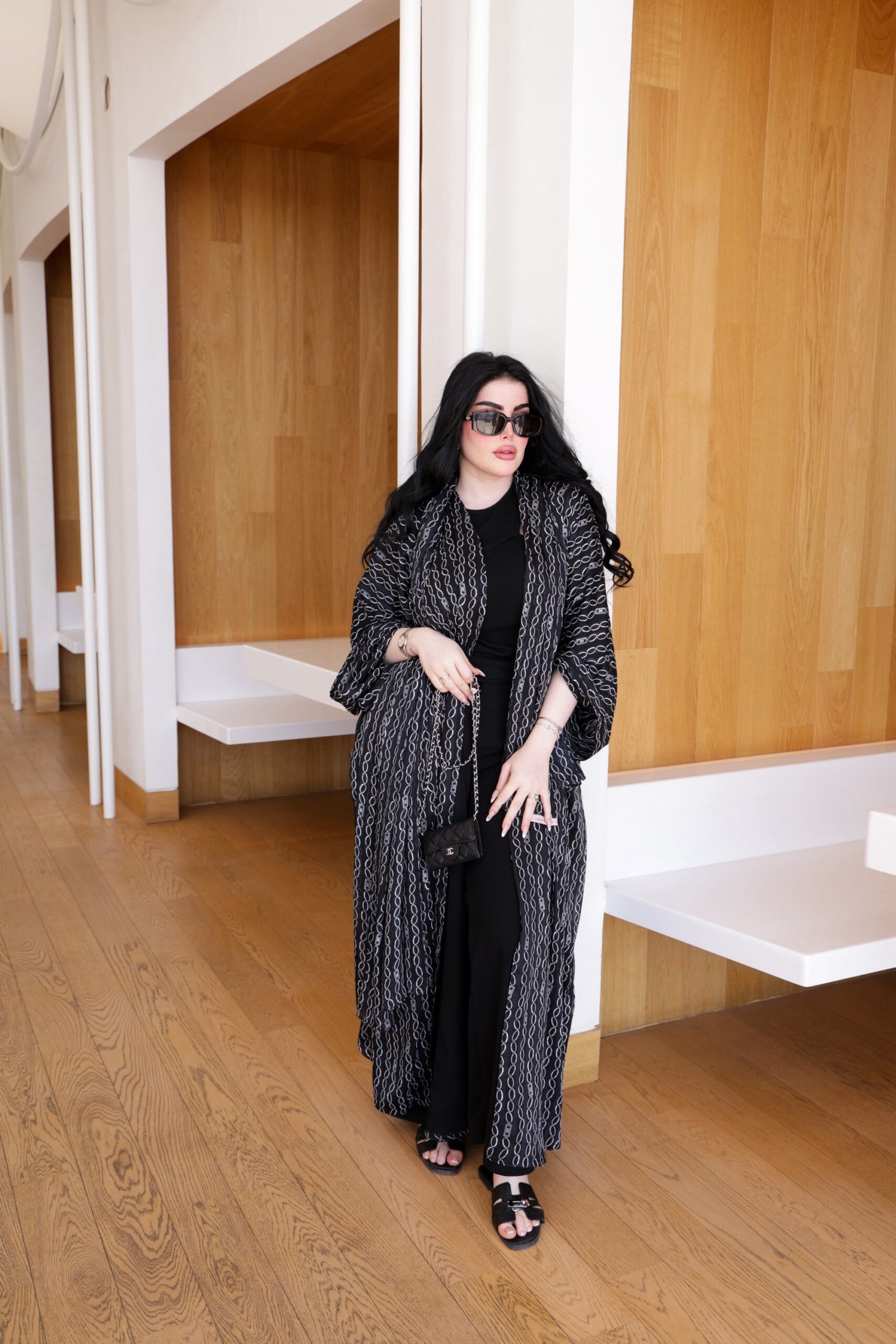 عبايه شيفون مبطن مع ملفع بنفس النقشه..