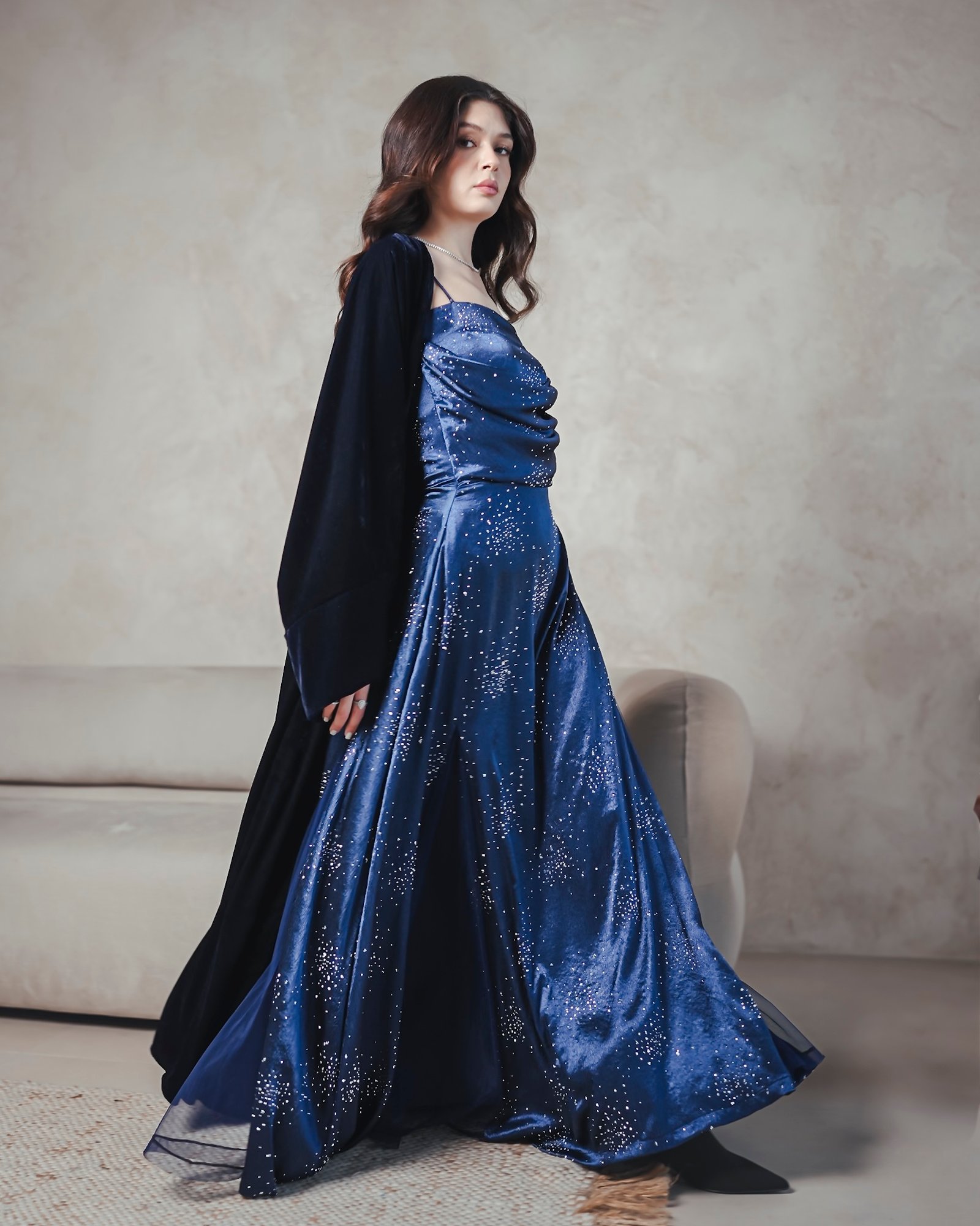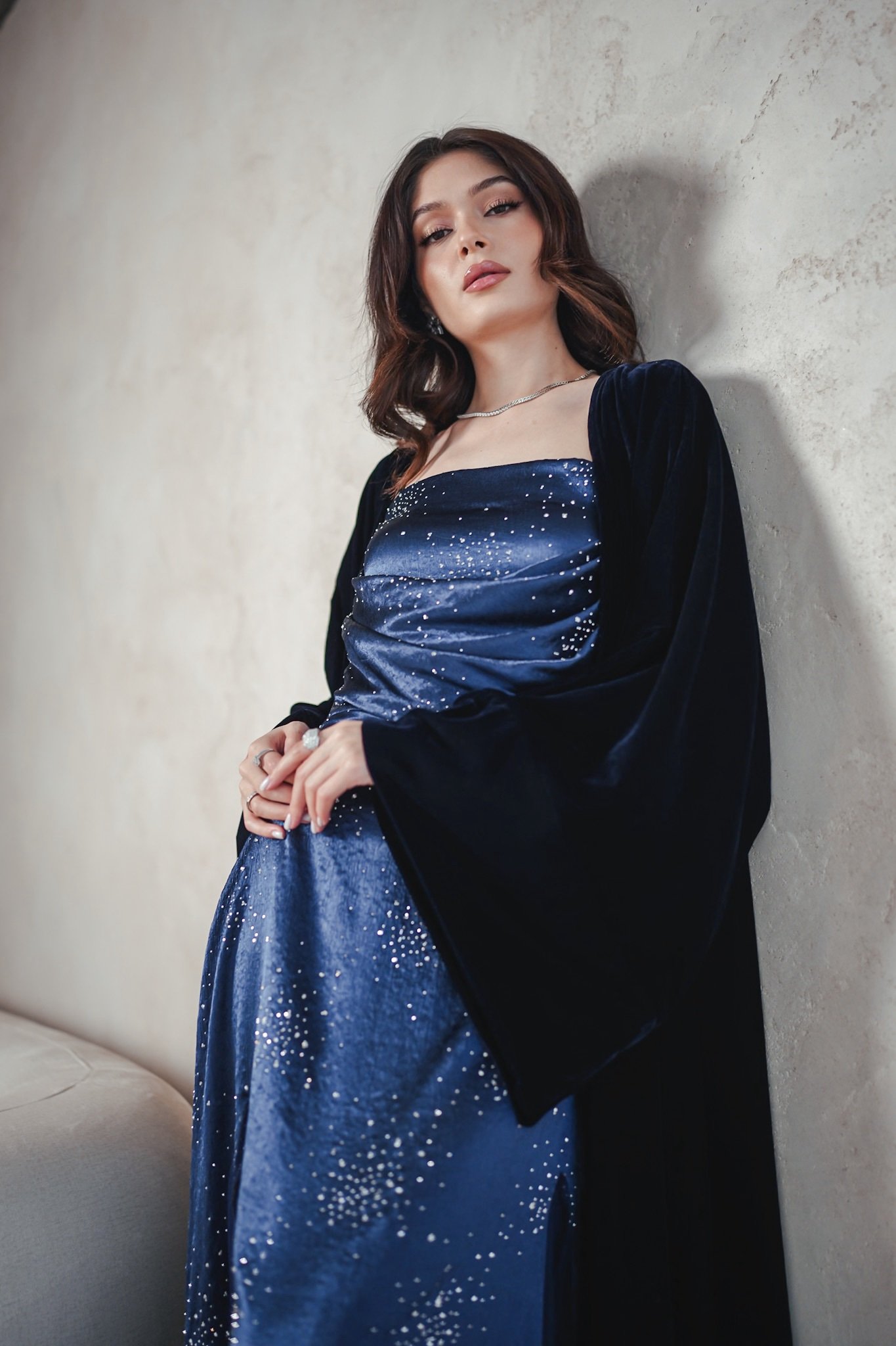 دراعة من قطعتين بشت مخمل وفستان حرير ستراس بقصات تور …