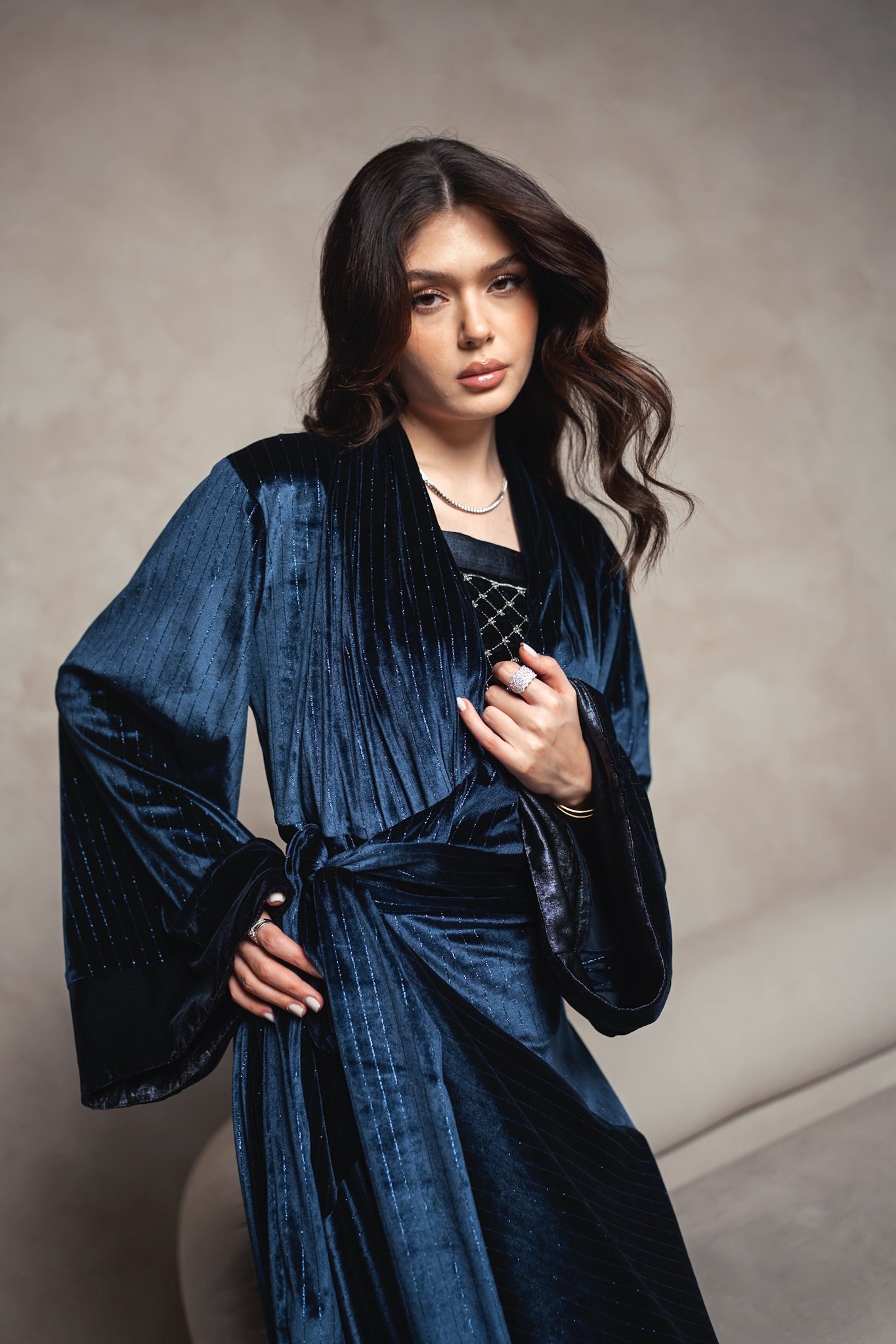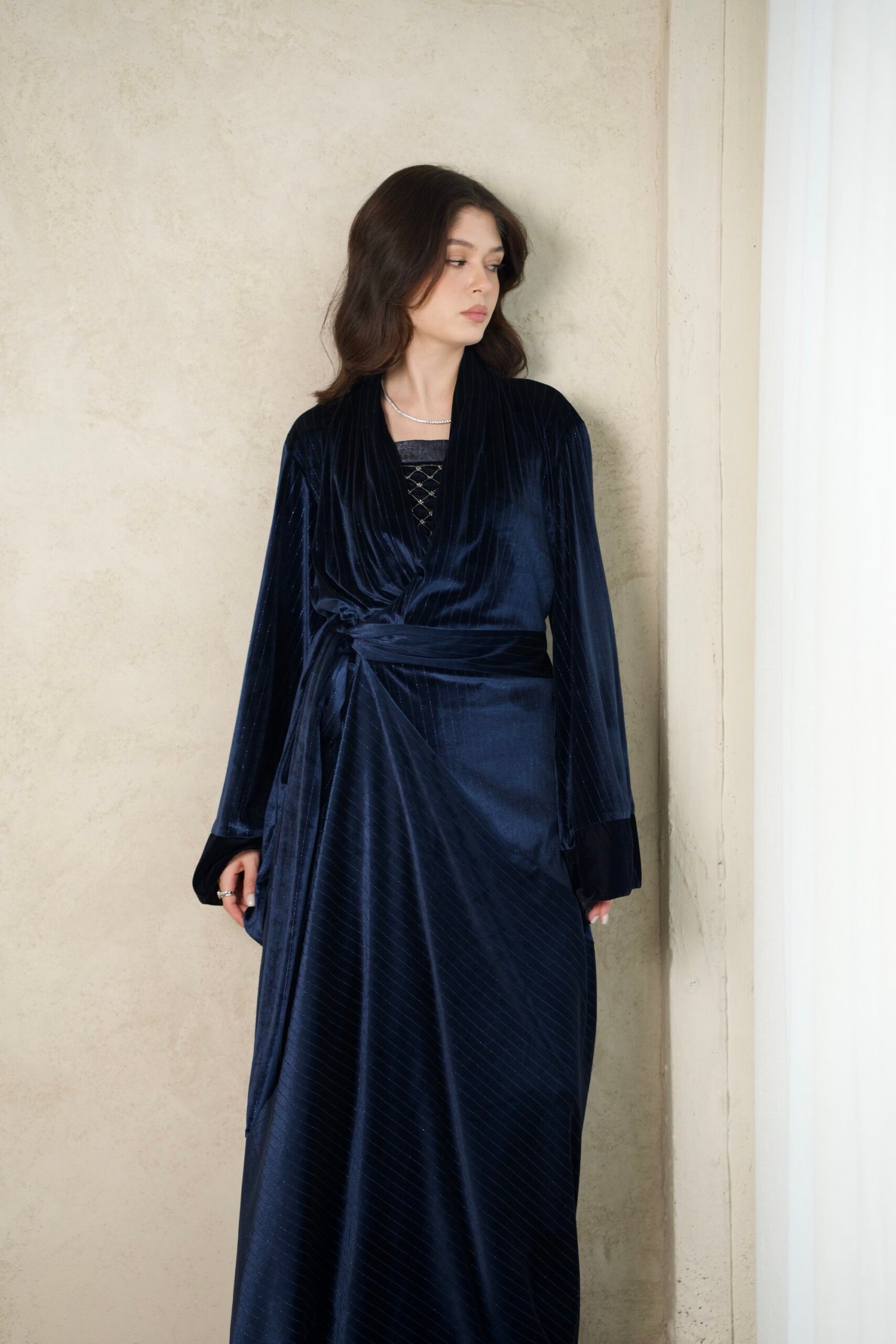 دراعة لف مخمل مخطط مع توب شك .